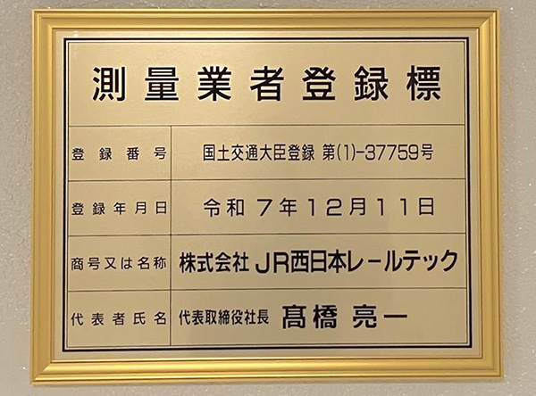 2025年(令和7年)12月11日付 国近整建二産測第2536号により、近畿地方整備局長から測量業者としての登録通知を受けました。当社としては「建設業」「建設コンサルタント業」「計量証明事業」に続く4つ目の事業登録となります。 今後は、3D点群レーザー測量業務の受注及び拡大を目指していきたいと考えております。